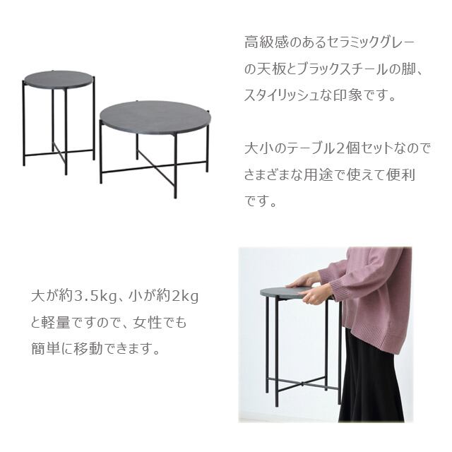 ◆お得な大小のテーブル2個セット。さまざまな用途で使えて便利です。