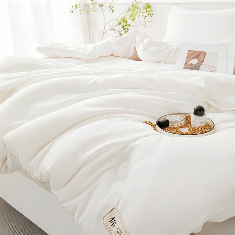 ・充填物 大豆タンパク繊維は大豆粕を原料とし、大豆粕からグロブリンを抽出し、一連のプロセスを経て精製した。 中空構造の繊維が空気を包み、高い保温力を持ち、暖かい睡眠体験を提供する。 ポリエステル繊維90%+大豆繊維10%と、従来の合成フィラーに比べて非常に軽量である。 (保存と管理方法)