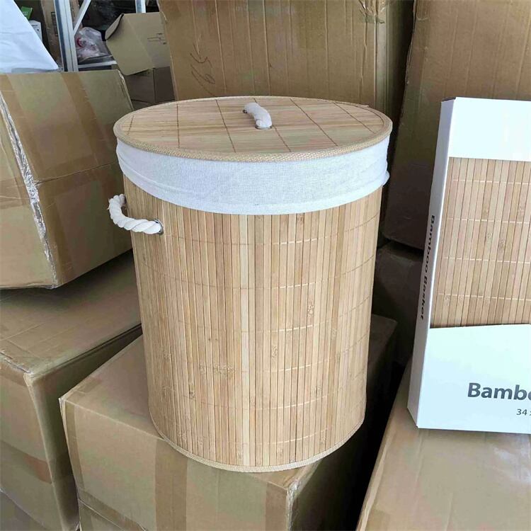 折り畳み竹製収納かご 蓋付き ヨガマット・おもちゃ・衣類収納対応 多機能衣類整理カゴ