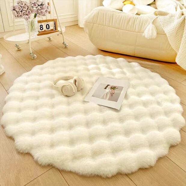 フェイクアンゴララグ 円形ラグ 丸いカーペット リビング ラグマット 60cm 100cm ふわふわ肌触り