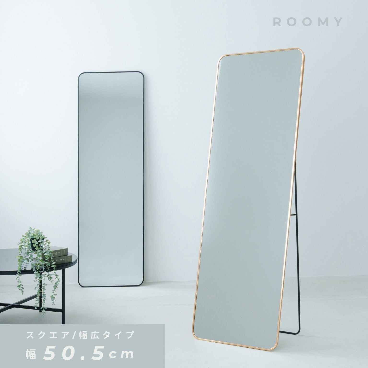 スタンドミラー ルーミー(スクエア) 幅50cm 鏡 姿見 全身 ゴールド 大型 ワイド 韓国インテリア