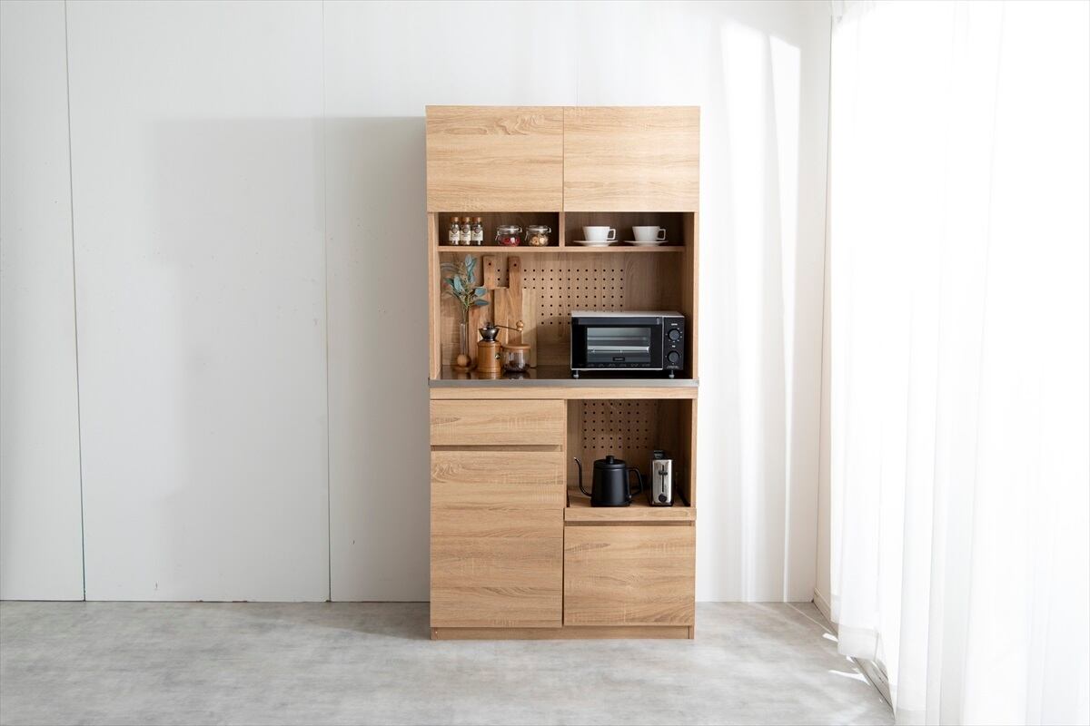 【幅90cm】Feliz ステンレス天板食器棚