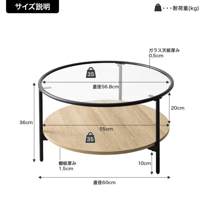 【幅60cm】Junon ガラス天板センターテーブル