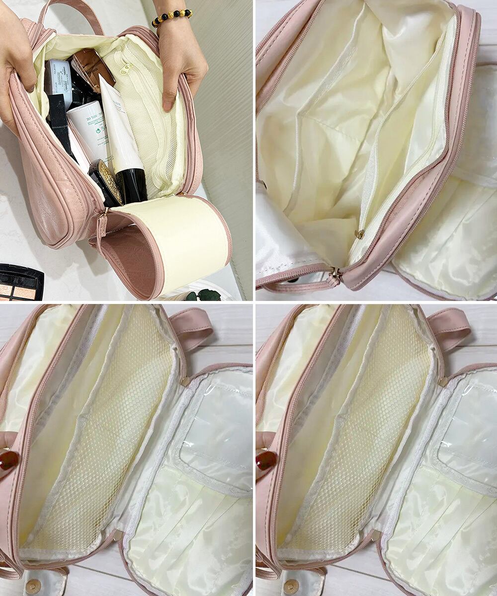 PUレザー マルチトラベルメイクポーチ 韓国風収納バッグ 手提げ 小物入れ化粧ポーチ ファスナー付き 旅行用コスメケース