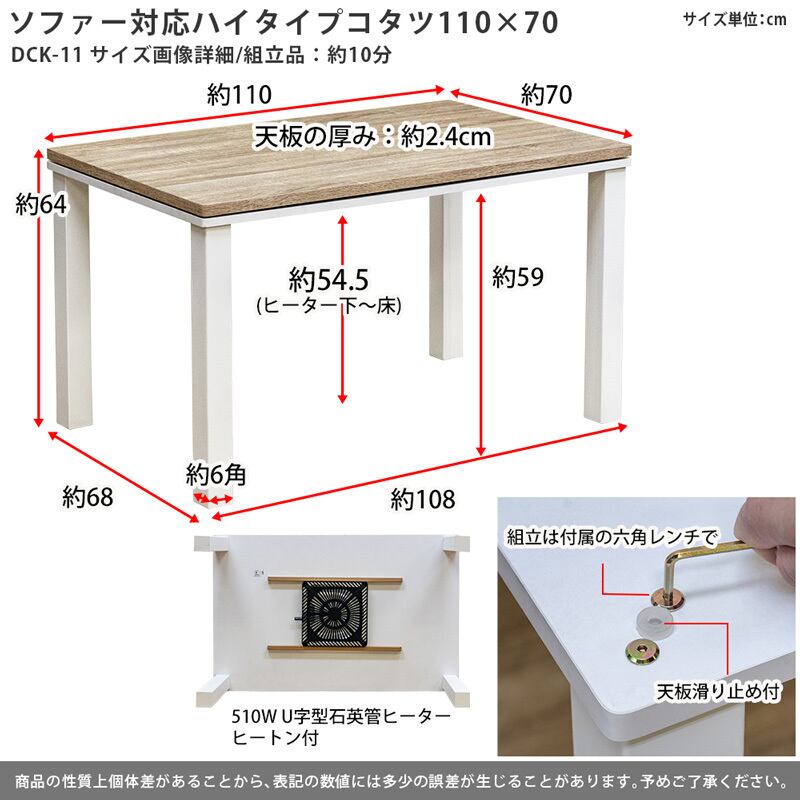 ソファ対応 ハイタイプコタツ 110×70 BR/NA/WAL