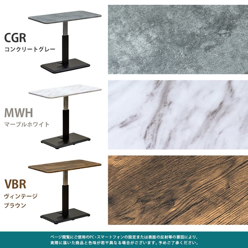 昇降式リビングテーブル 90×48 MWH/VBR/CGR