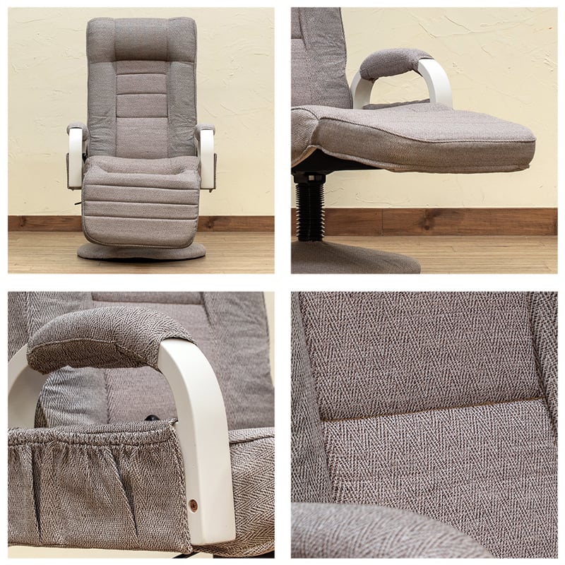 昇降式リクライニングチェア フット付き レバー式 BR/WH