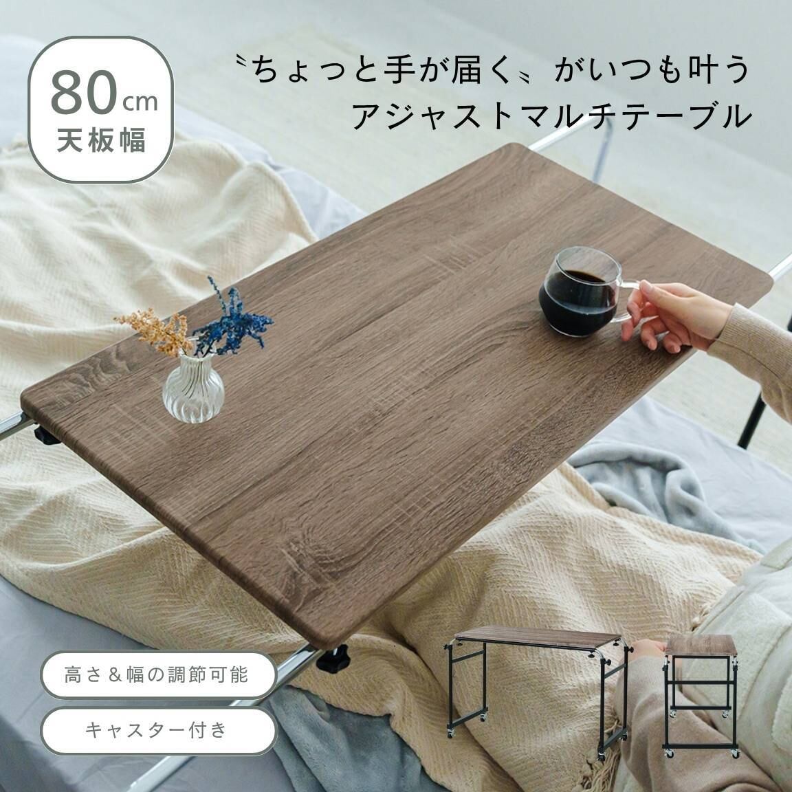 高さと幅の調整が可能なベッドテーブルが