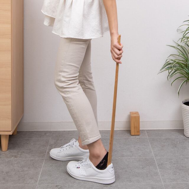 立ったまま快適にお使いいただけるロングタイプの靴べらです。
