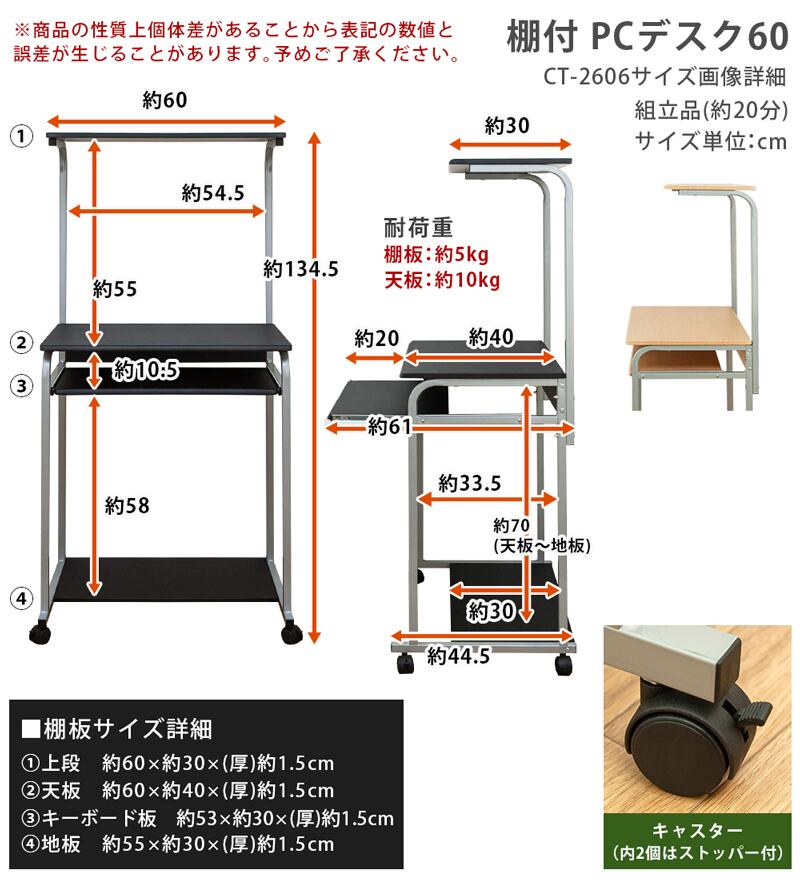 棚付き PC DESK 60 BK/NA/ABR/LGR/MWH