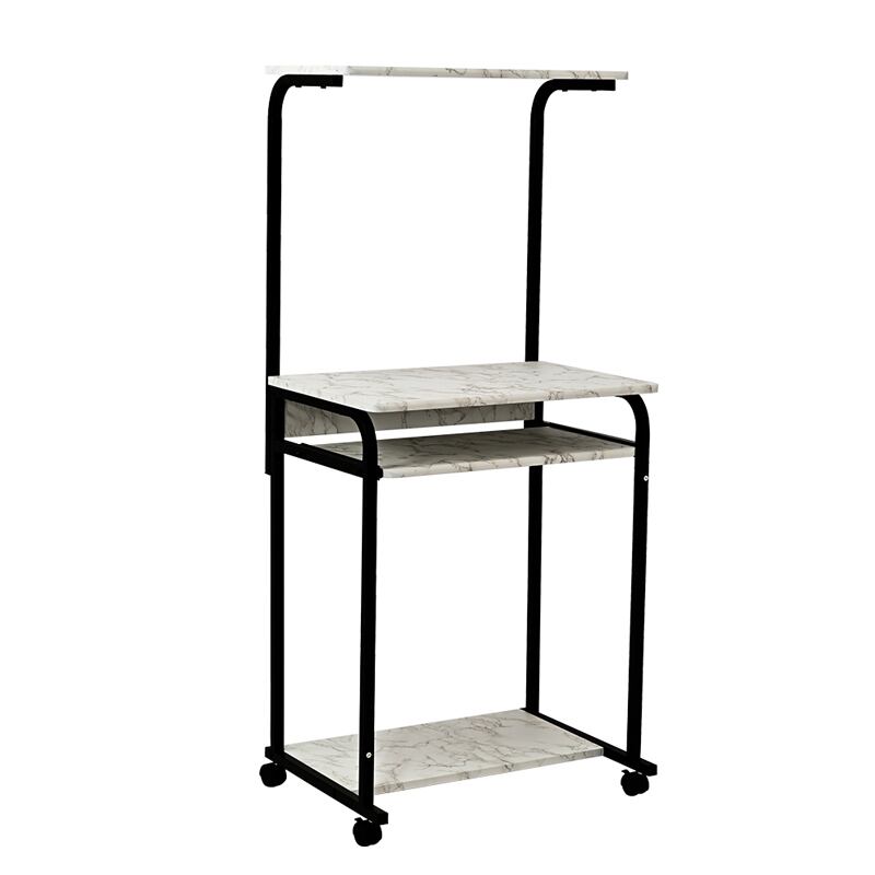 プリンターなどは上段の棚に、キーボードはスライドテーブルに、小物やソフトは下段の棚などに収納できます