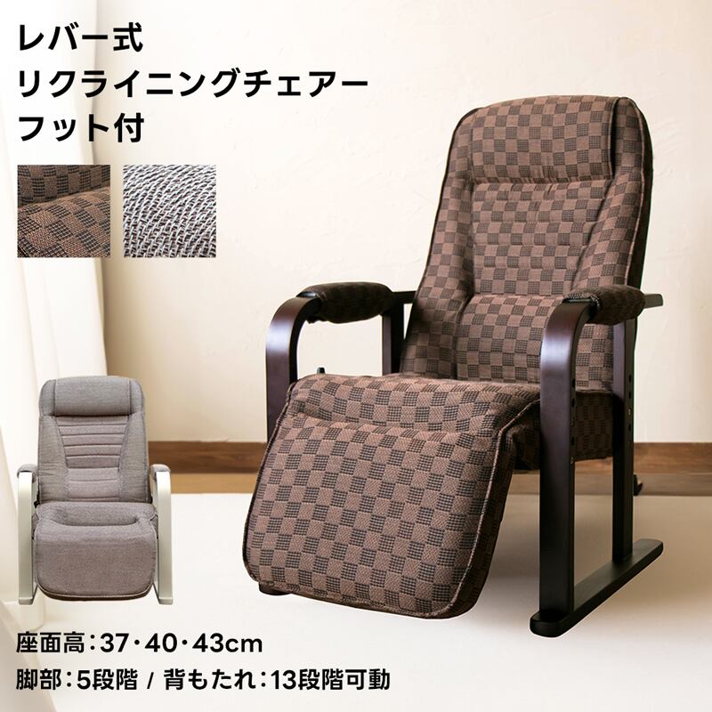 レバー式リクライニングチェア フット付き BR/WH