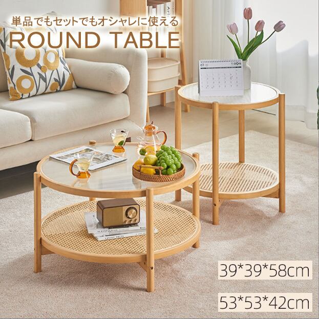ラウンドテーブル センターテーブル リビングテーブル ラタン編み サイドテーブル 韓国インテリア
